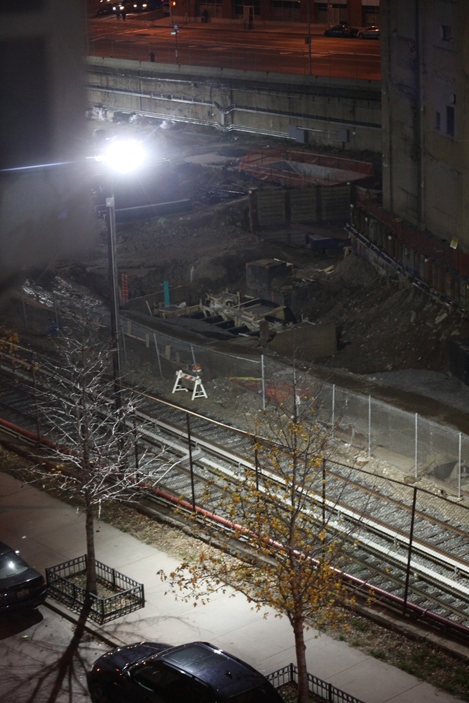 For the last several weeks railyard flood lights installed in 2010 have been used to extend construction hours. They have also been used intermittently during the very early morning hours either for construction or LIRR maintenance.